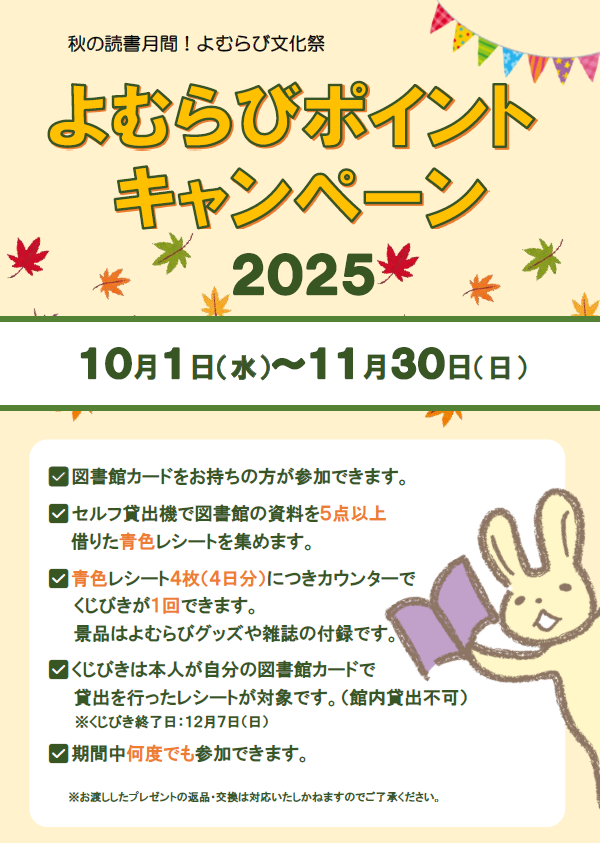 秋の読書月間!よむらび文化祭 第1部➀よむらびポイント キャンペーン2025
