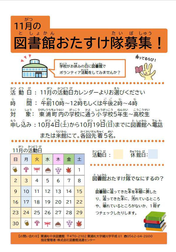 対 象:東浦町内の学校に通う小学校5年生~高校生